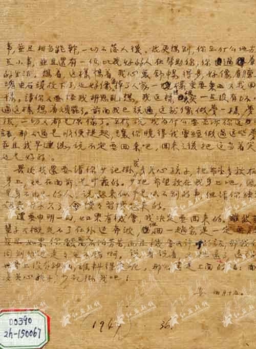 当姜绮华得知丈夫被害的消息,肺病复发,无法亲赴重庆认领丈夫的遗体,但她发誓,在有生之年,她一定要回到令她魂牵梦萦的重庆,去看看她的亲人,看看她那挚爱的丈夫。想念丈夫时,她会把这封随身携带且精心保护的信拿出来一遍一遍地看,只有此时,她才感觉到丈夫就在身边而没离开。1963年,重庆中美合作所美蒋罪行展览馆成立后,展览馆向烈士家属发出倡议,希望能收集烈士的遗物,以便更好地宣传革命者的英勇事迹。尽管非常难舍,但是为了让更多人了解丈夫的事 迹,1965年,姜绮华毅然将此信捐赠给展览馆。1995年3月,此信被重庆文物评定小组的专家一致认定为一级文物。