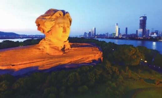 该雕塑依据1925年青年时期毛泽东形象创作而成,雕塑高32米、长83米、宽41米,基座3500平方米,由8000多块采自福建高山的永定红花岗岩石拼接而成,总重量约2000吨,是目前国内最大的伟人艺术雕像。据悉,毛泽东青年艺术雕塑于2009年12月26日在橘子洲头建成并对外开放,成为了展示长沙新形象的地标性景点,橘子洲头也成了广大市民游客瞻仰伟人风采的好去处。